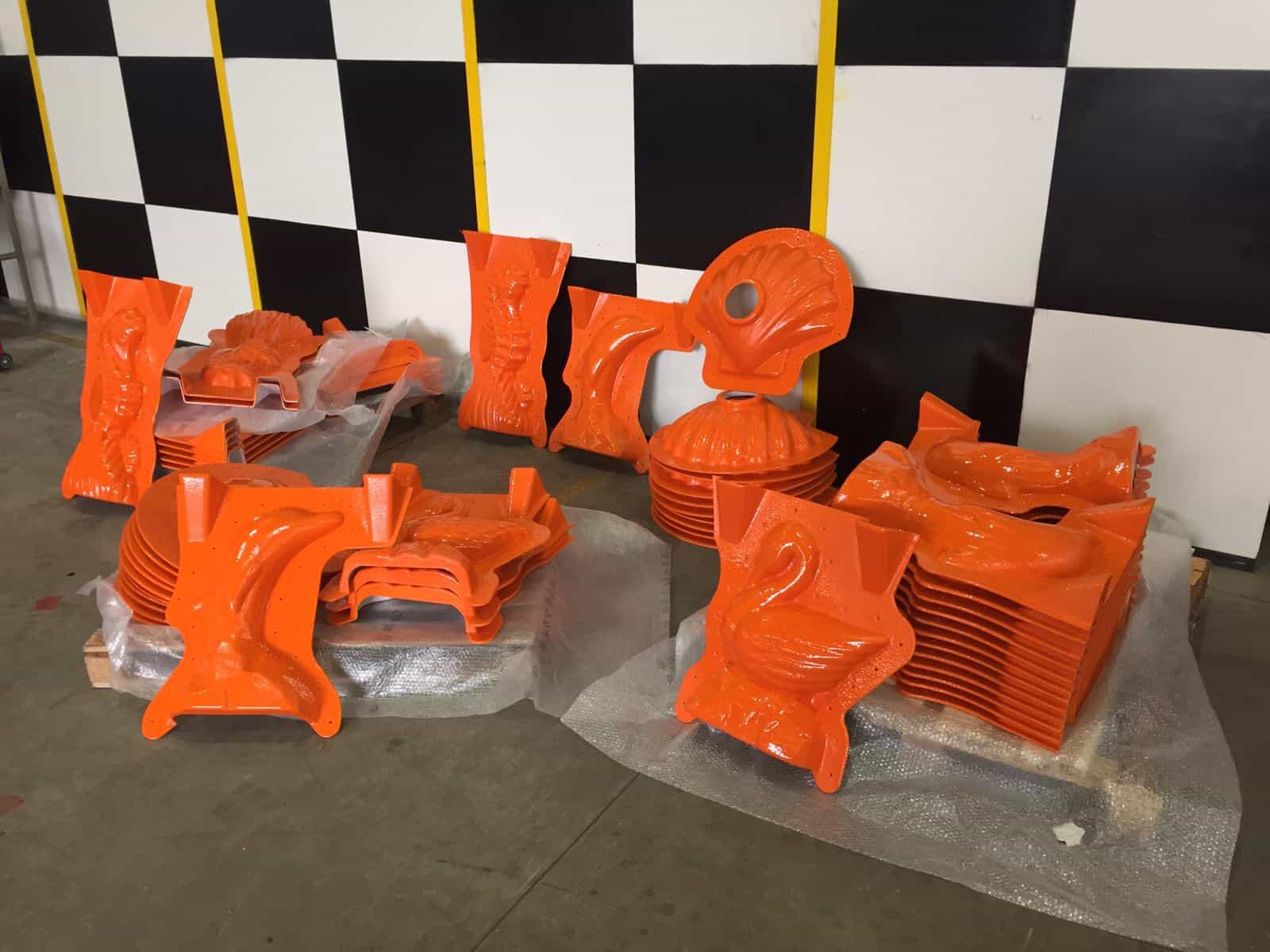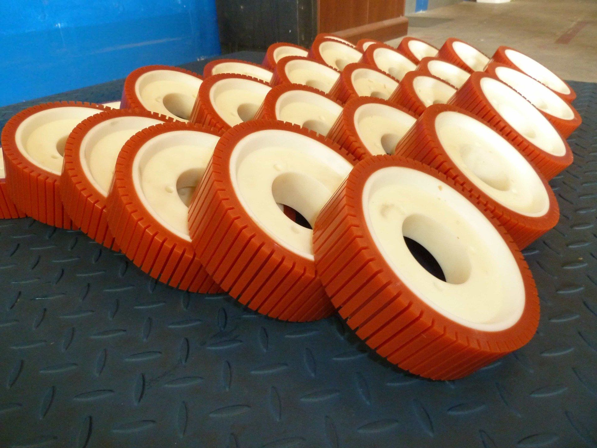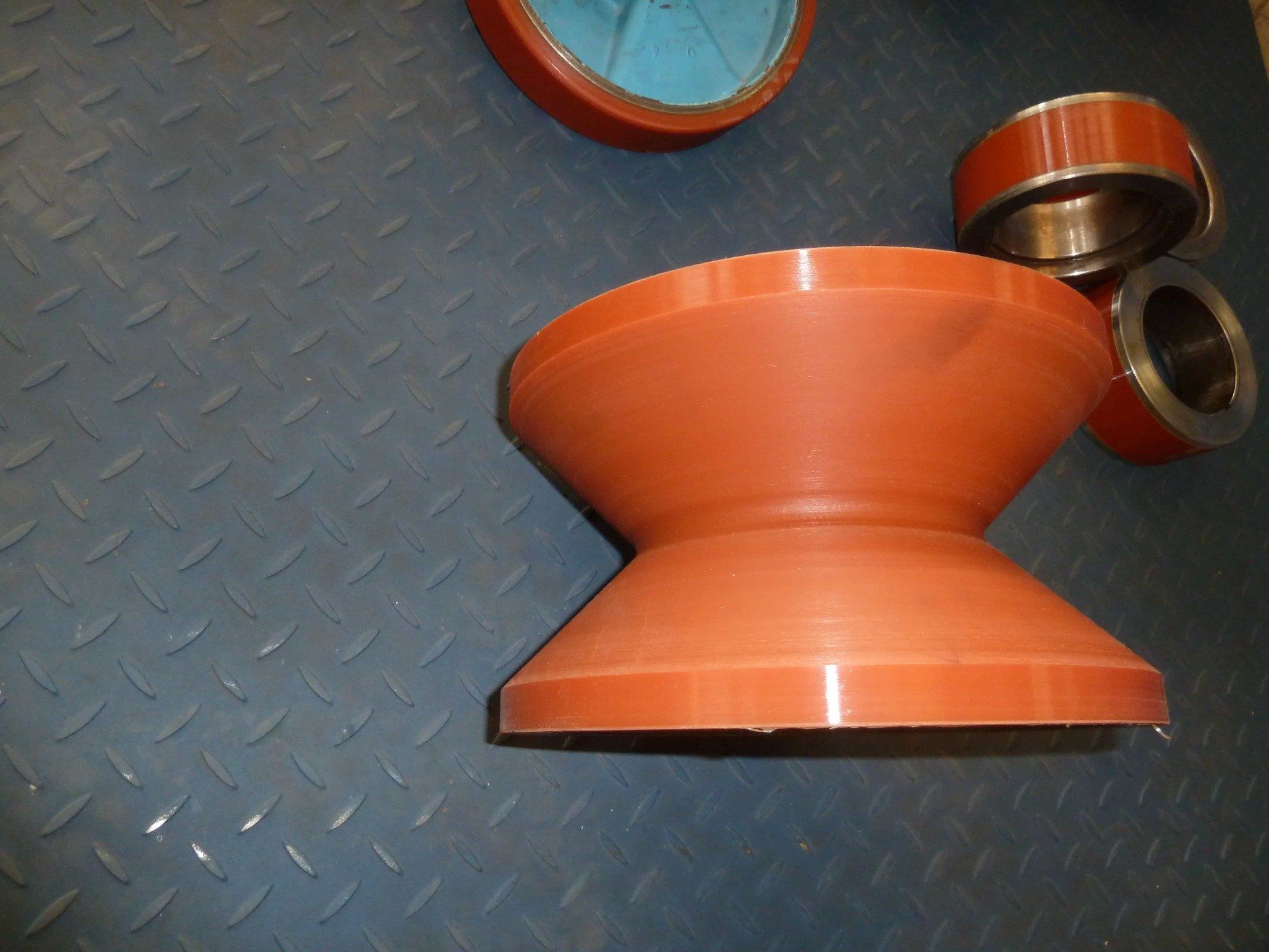 in gomma, vulkollan, poliurea e poliuretano sia a spruzzo che colato.